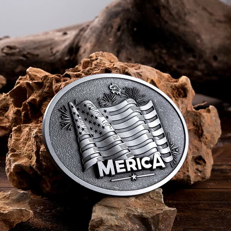 Le style amérindien du Texas avec le drapeau américain et l'étoile du Texas vous propose une série nationale de boucles de ceinture. La forme ovale et la finition argent/cuivre antique avec une technique de sculpture 3D correspondent parfaitement à votre tenue. Longue vie aux États-Unis.