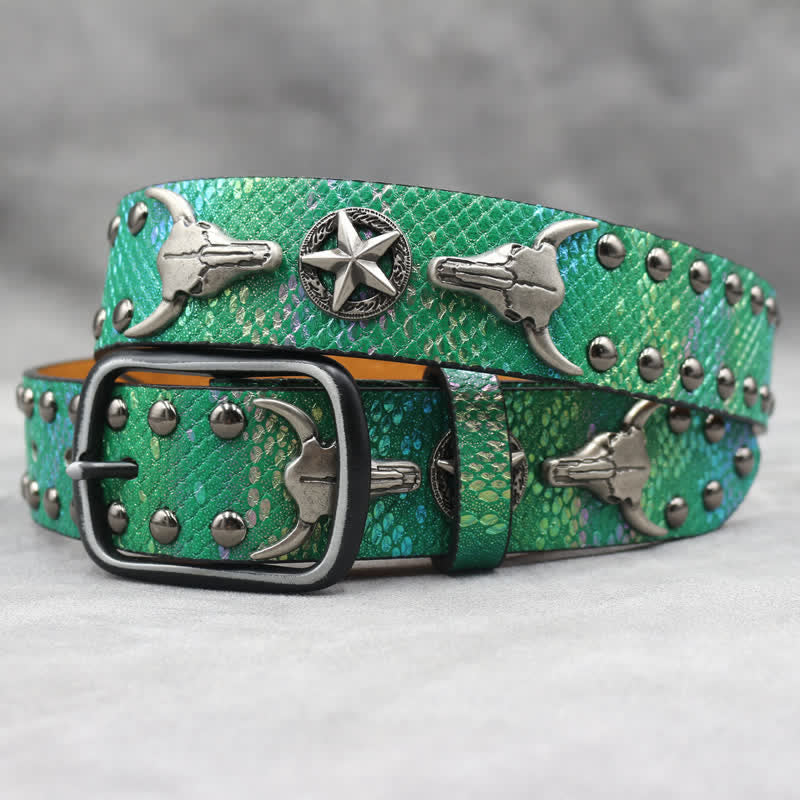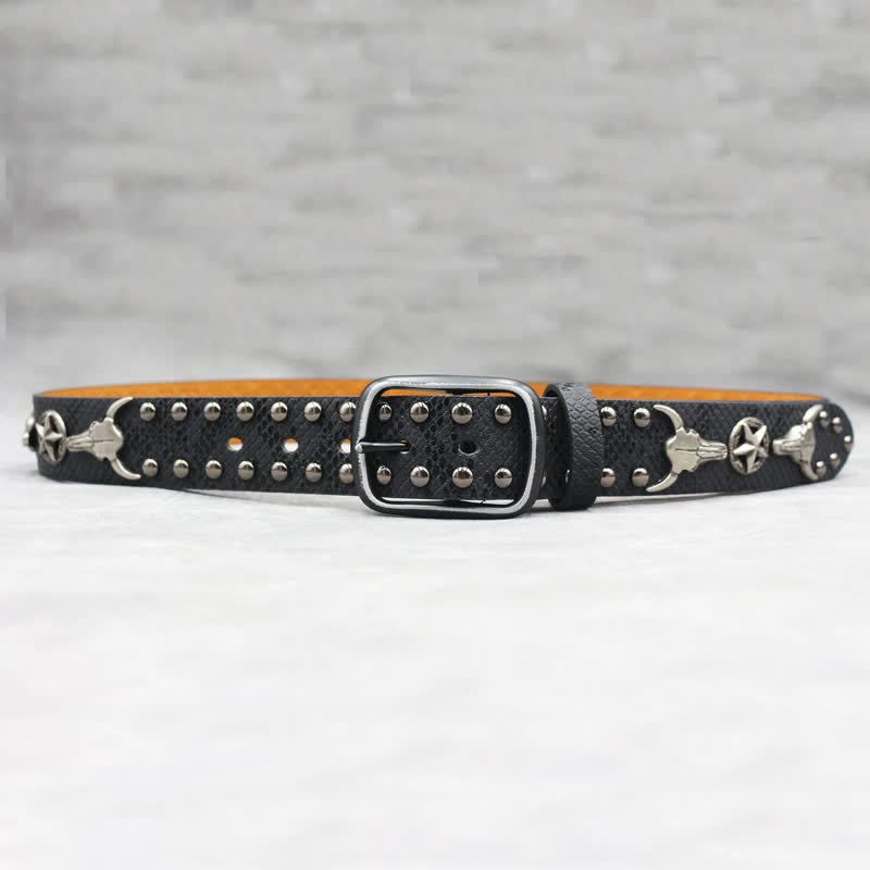 Voici la ceinture cloutée tête de mort par excellence. Décorée de rivets, elle est ornée de clous métalliques punk rock. Ces modèles tendance et tendance sublimeront votre look et afficheront votre esprit punk. Convient aussi bien aux hommes qu'aux femmes.