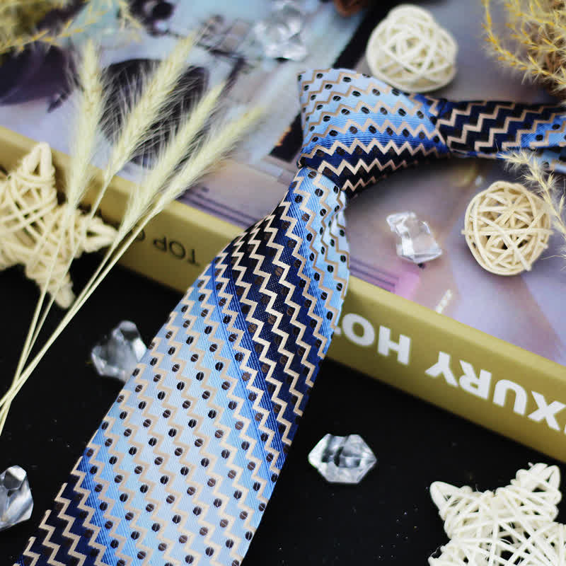 Cravate à rayures en zigzag à pois bleus et noirs dégradés pour homme