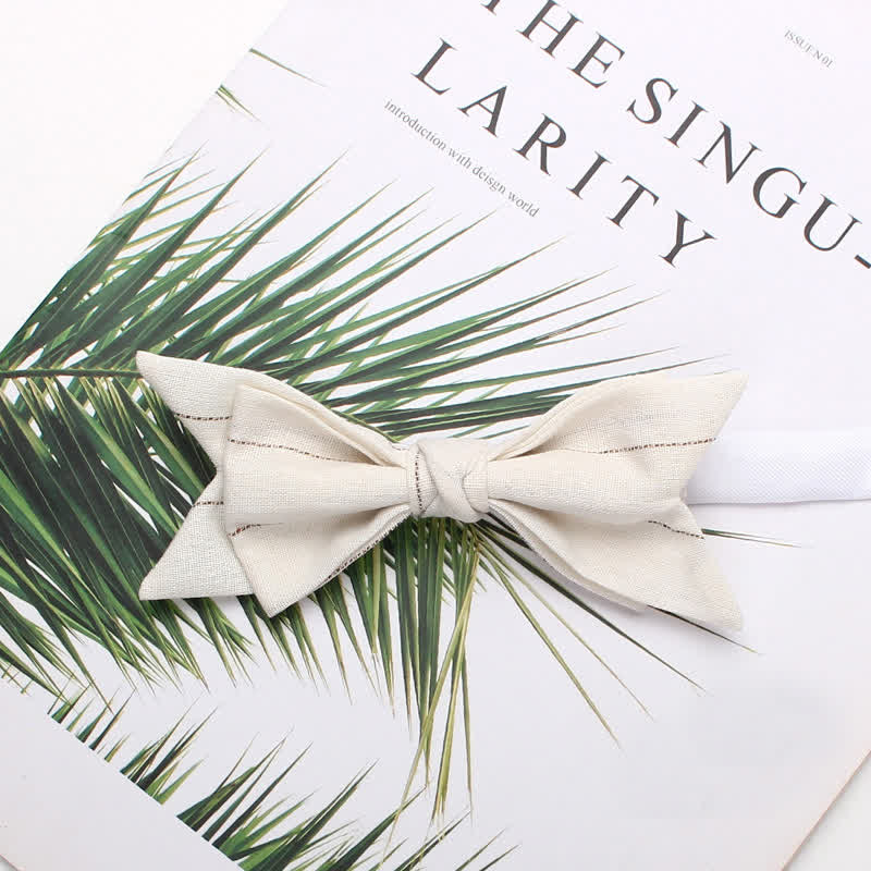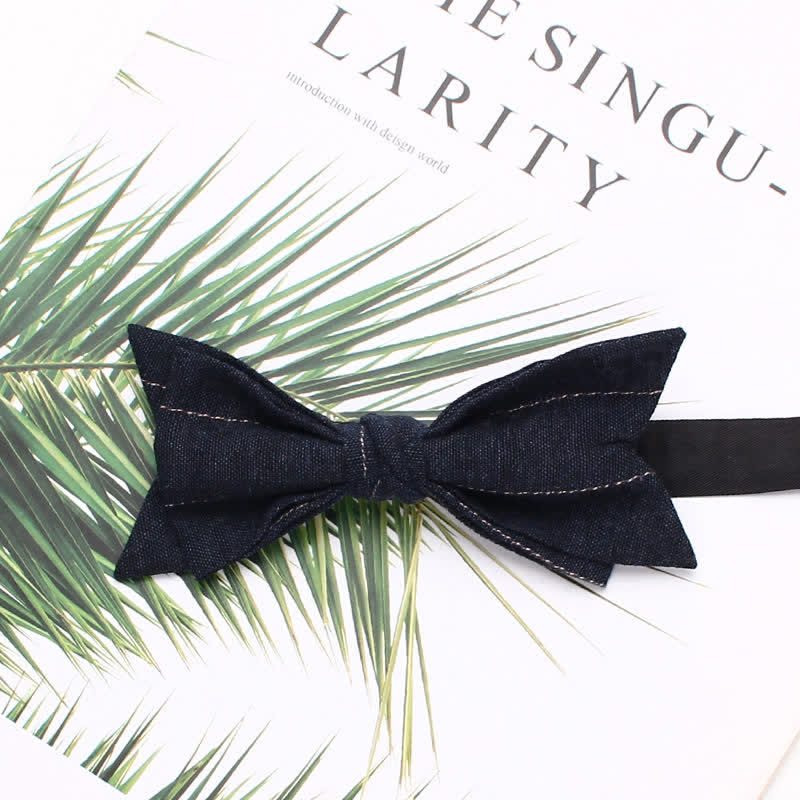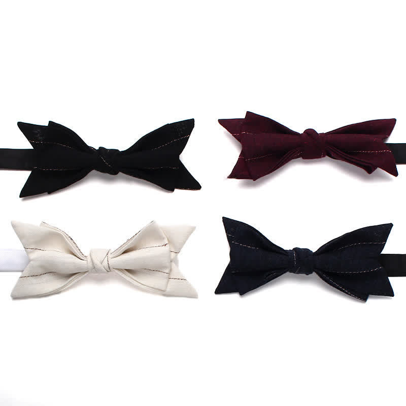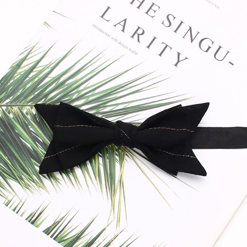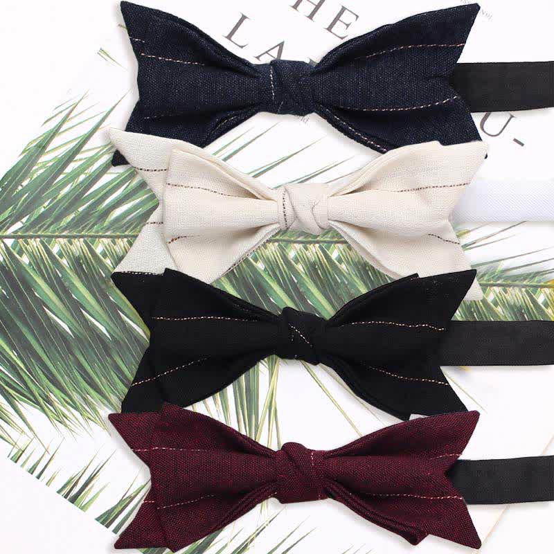 - Le nœud papillon présente un motif rayé sur un fond uni, créant un motif unique.