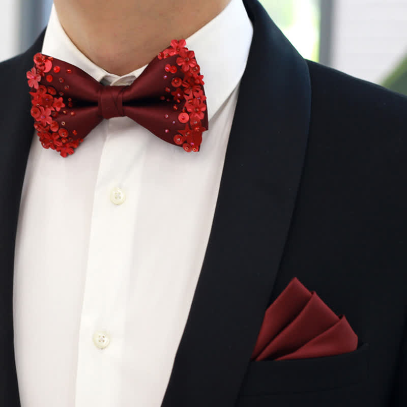 - Un nœud papillon vintage recouvert de paillettes fleuries brillantes, un charme désuet parfait !