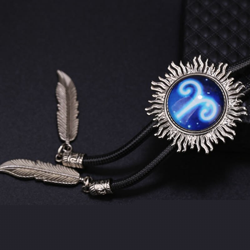Cette cravate bolo de la série Zodiaque se distingue par son design unique. Élégante, elle peut aussi se porter en collier ou en pendentif. Parfaite pour sublimer votre look lors d'occasions spéciales ou ajouter une touche d'originalité à vos tenues quotidiennes.