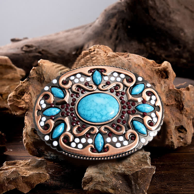 Il s'agit d'une magnifique boucle de ceinture western, à la mode et charmante. Les détails comprennent des pierres turquoise artificielles et des pierres artificielles blanches et rouges.