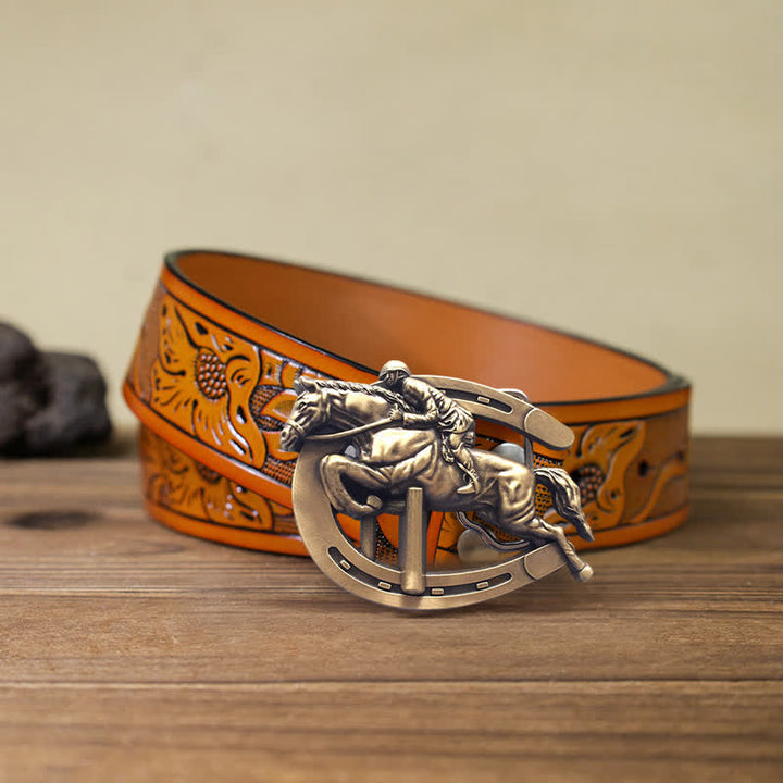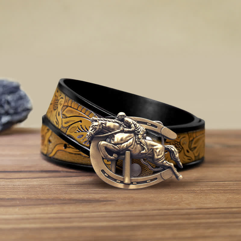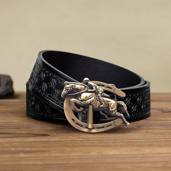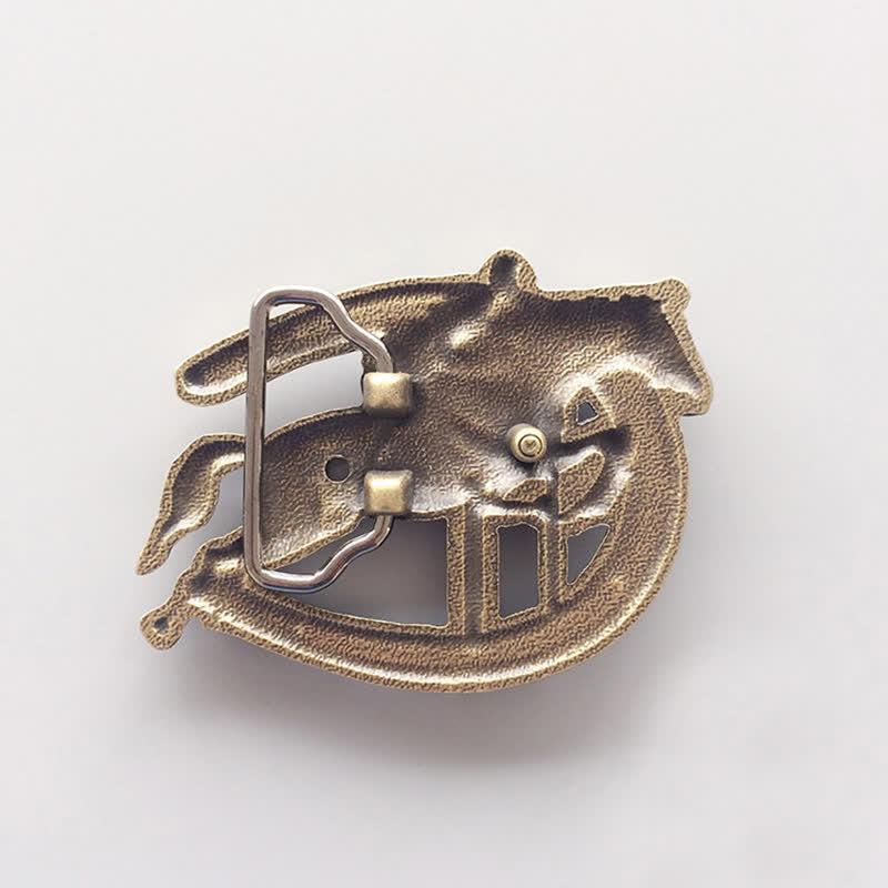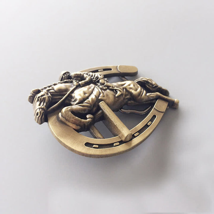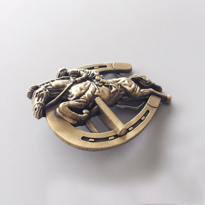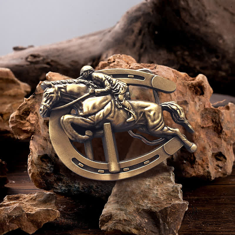 En route pour les cours ! Le cheval et le jockey sont sculptés et placés dans un cadre en fer à cheval de type course. Il s'agit d'une boucle 3D qui présente de jolis détails.