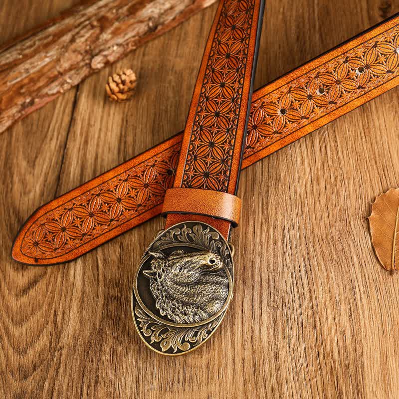 Le cheval au galop donne à l'homme le pouvoir de vaincre l'ennemi et de vaincre la faiblesse, et sa belle flexibilité apporte de la chaleur à la vie humaine. Cette boucle gravée vintage spécialement conçue avec un motif de cheval rétro 3D est un accessoire rétro accrocheur.