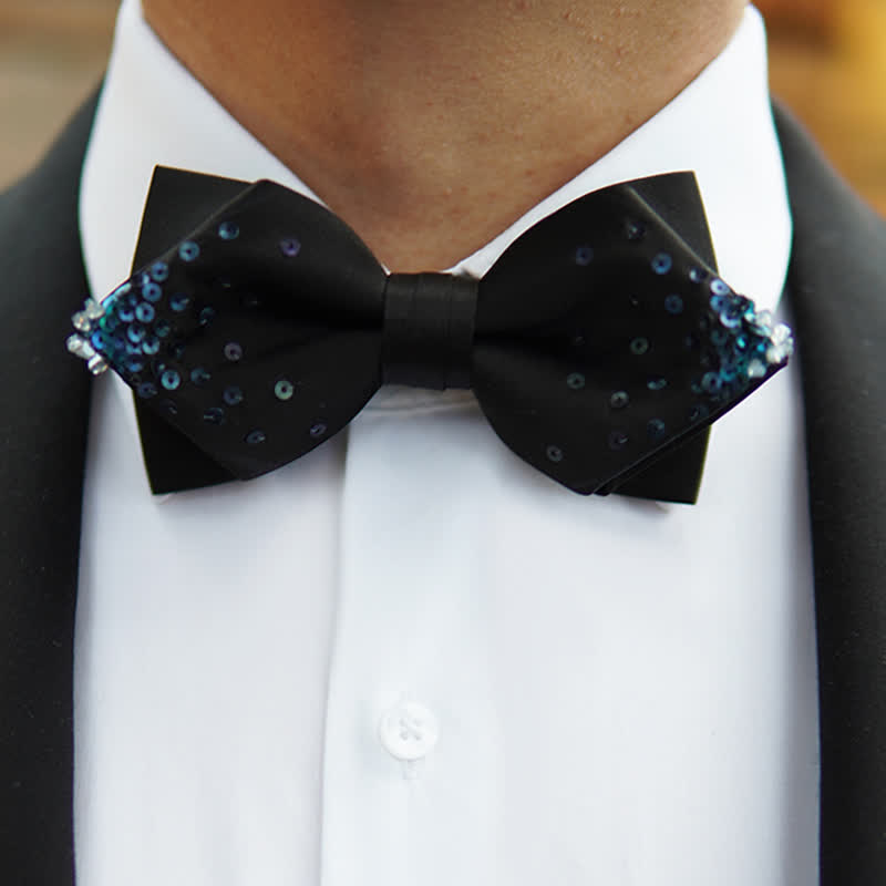 Nœud papillon pointu à paillettes bleu dégradé pour homme