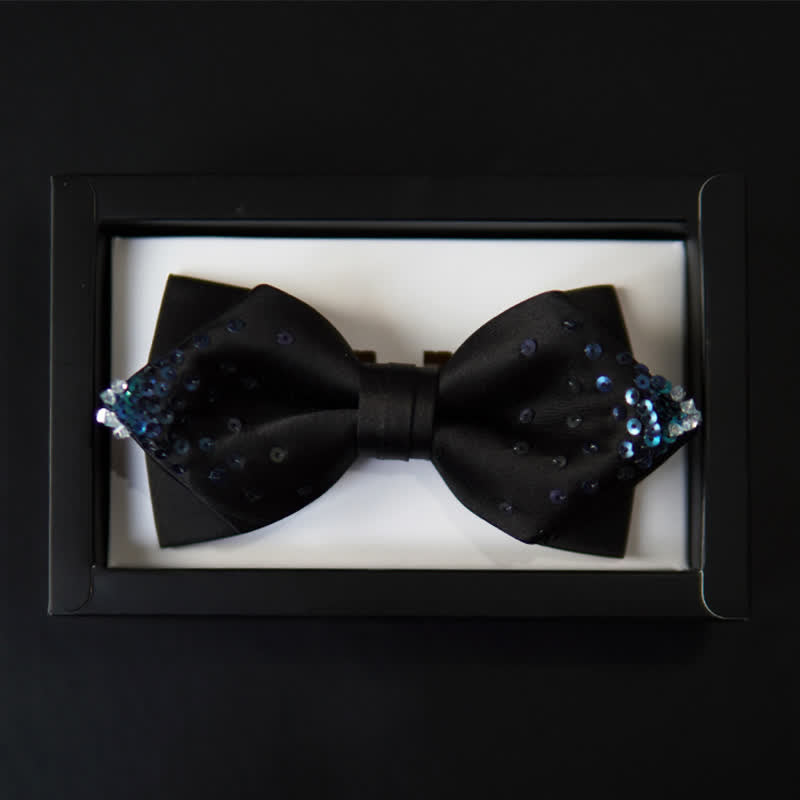 • Faites une déclaration audacieuse lors de votre prochain événement spécial avec le nœud papillon scintillant en noir.