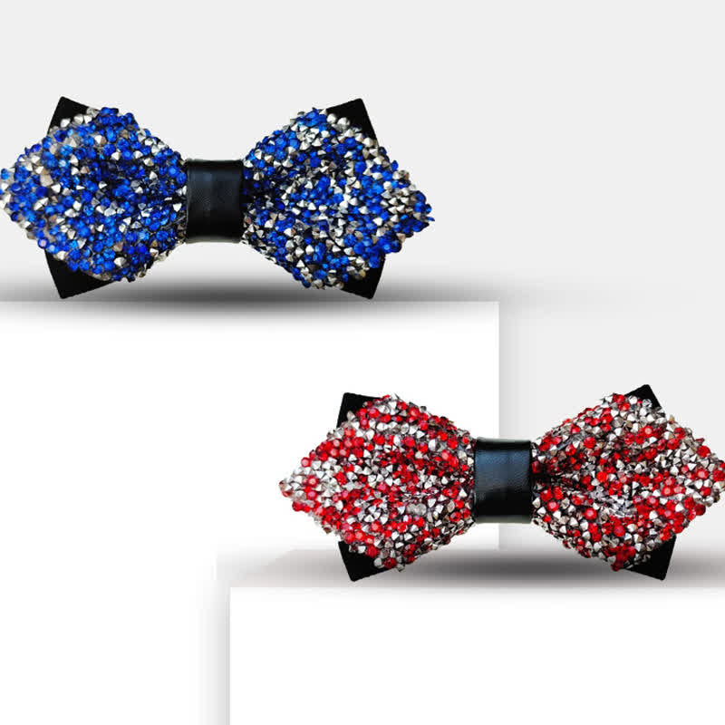 Nœud papillon pointu à double épaisseur avec strass scintillants pour homme