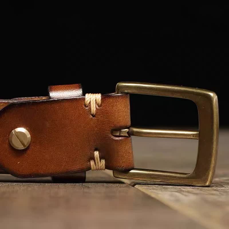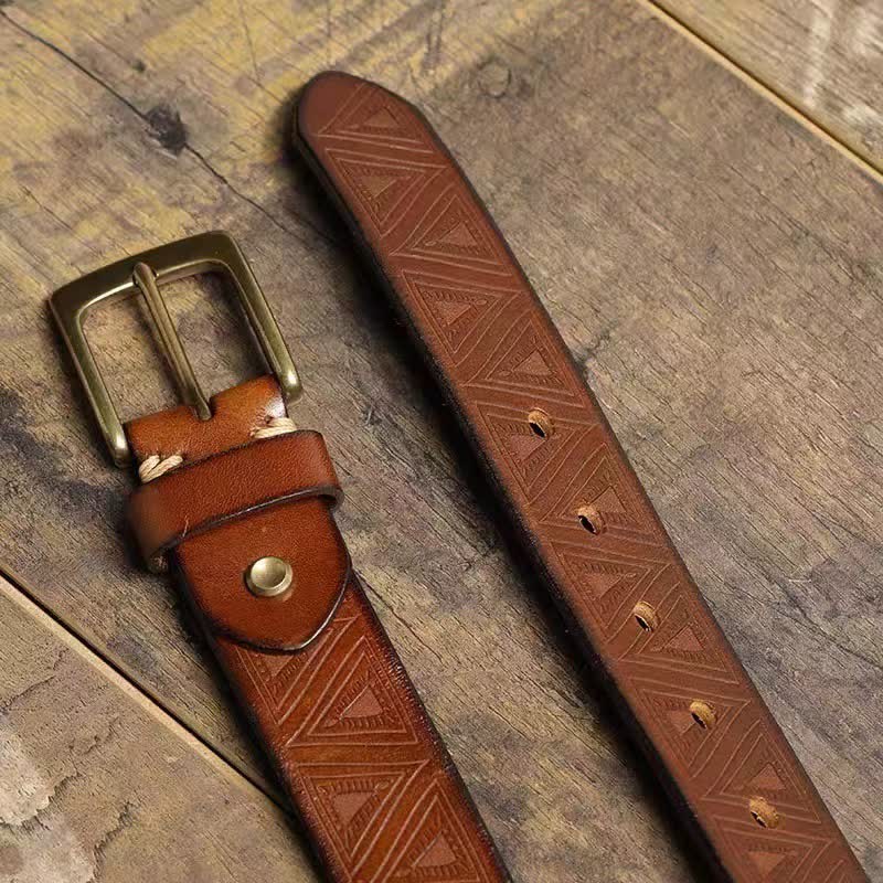 La ceinture présente un motif triangulaire en relief, bien fait et amusant. Avec une boucle en laiton vintage, l'ensemble de la ceinture apparaît plus exquis et plus beau.