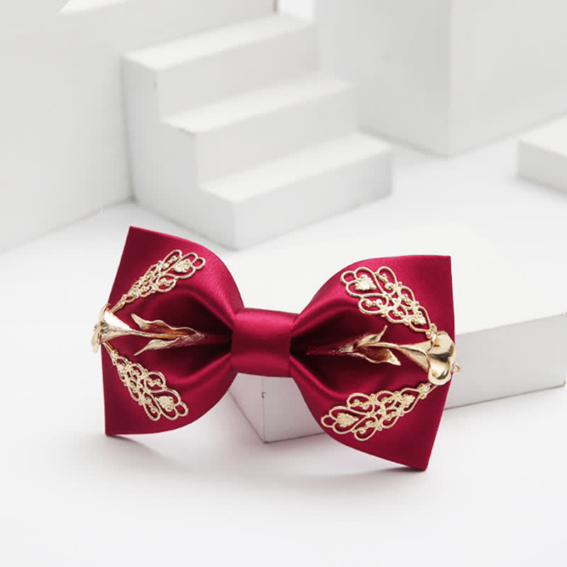 Nœud papillon pour homme à motif de lys calla à fleurs dorées - Rouge - image 0