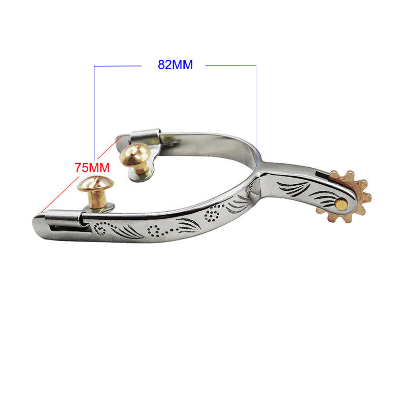 • Ces éperons exceptionnels sont fabriqués en acier inoxydable poli, avec des motifs occidentaux élaborés gravés à la main qui capturent l'esprit de la tradition.