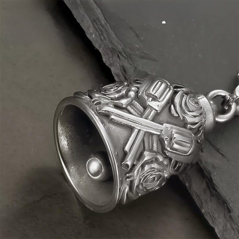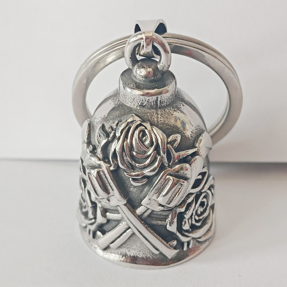 Ce porte-clés cloche emblématique est orné de deux canons et de roses. Fabriqué en métal de haute qualité, il est le cadeau idéal pour les passionnés de moto, alliant l'esprit rock à la tradition motarde. Il s'accroche facilement aux clés ou au guidon de votre vélo pour une touche personnelle.