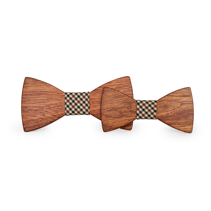 Ensemble de 2 nœuds papillon en bois massif naturel parent-enfant pour homme