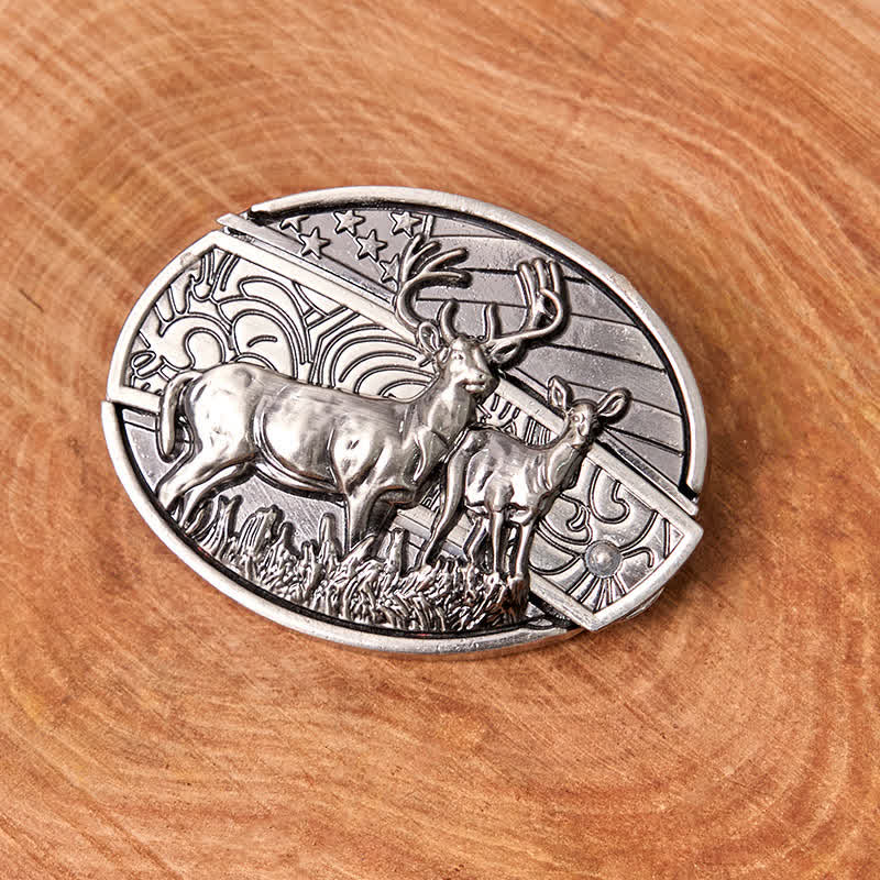 Ceinture en cuir pour homme avec couteau pliant caché et drapeau de cerf - Cerf - Sans ceinture - Ceinture non incluse - image 0