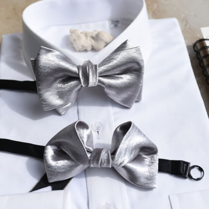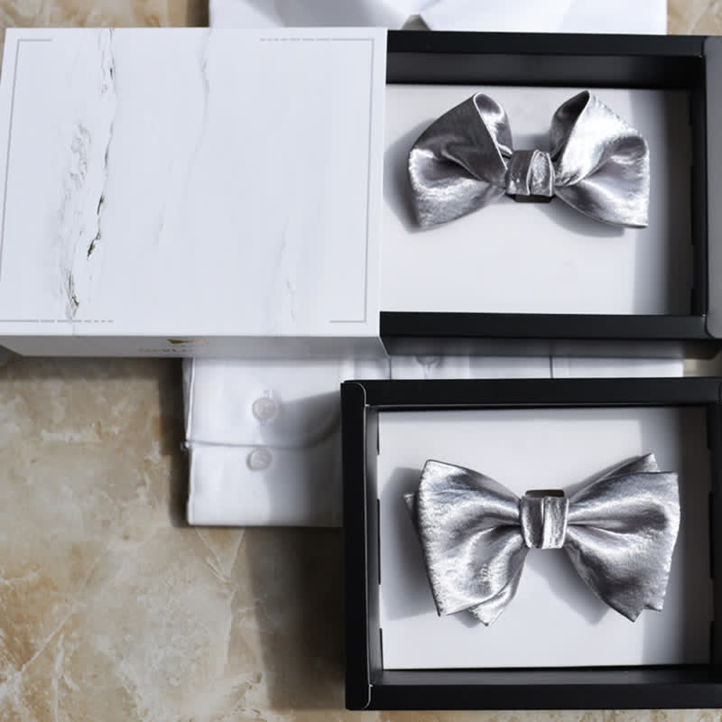 - Vous aurez fière allure avec ces nœuds papillon gris argenté brillant.