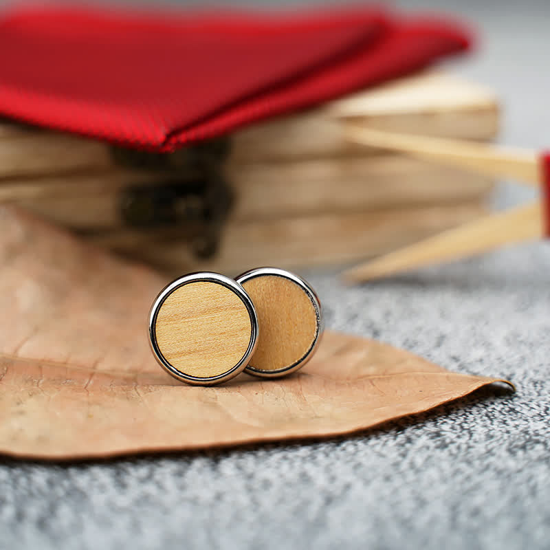 - Ensemble comprenant : nœud papillon en bois, mouchoir et boutons de manchette avec coffret cadeau en bois.