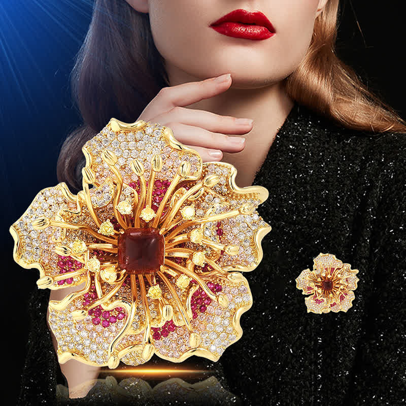 - Des pétales de fleurs et des étamines de fleurs plaqués or étaient incrustés de zircons colorés scintillants.