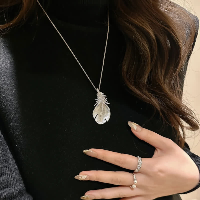 - Cette broche présente une forme de plume distinctive et des strass brillants.