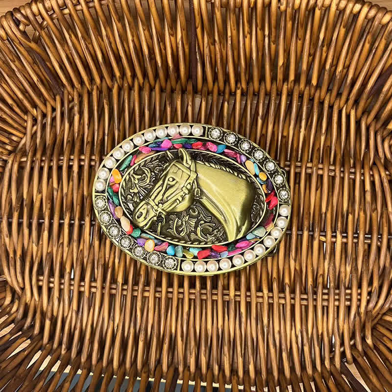 Tête de cheval gravée classique et motif floral, fausses perles et pierres colorées ajoutent un style bohème, il peut correspondre à n'importe quel jean et pantalon décontracté.