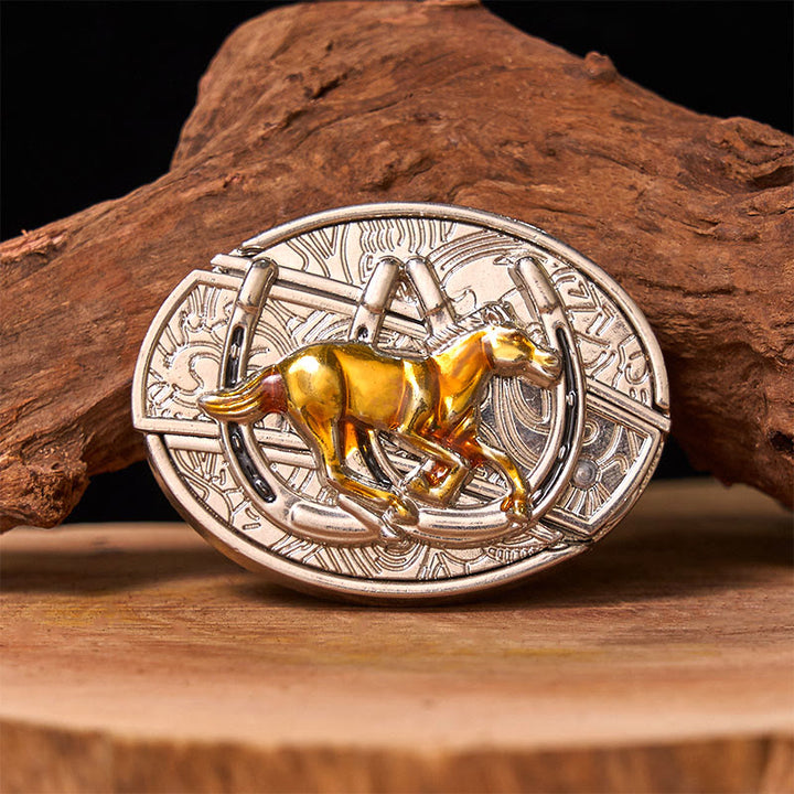 - Adoptant un ton or et argent brillant, cette boucle de ceinture de cheval en forme de U de style western rodéo est unique et élégante.