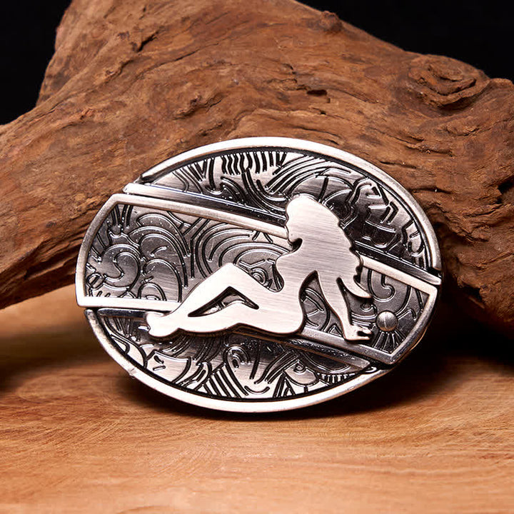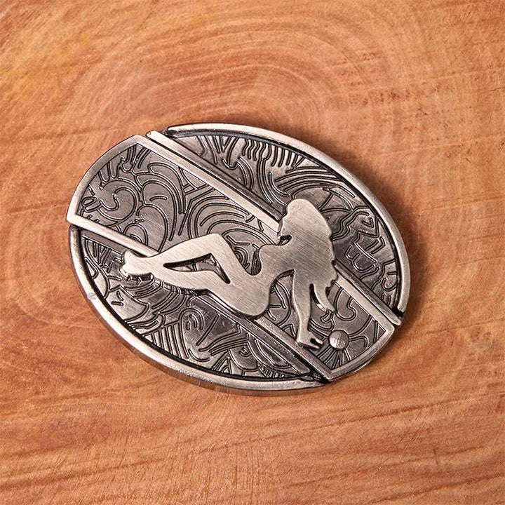 - D'une légère pression du doigt, le centre de la boucle de ceinture peut facilement glisser vers l'extérieur.