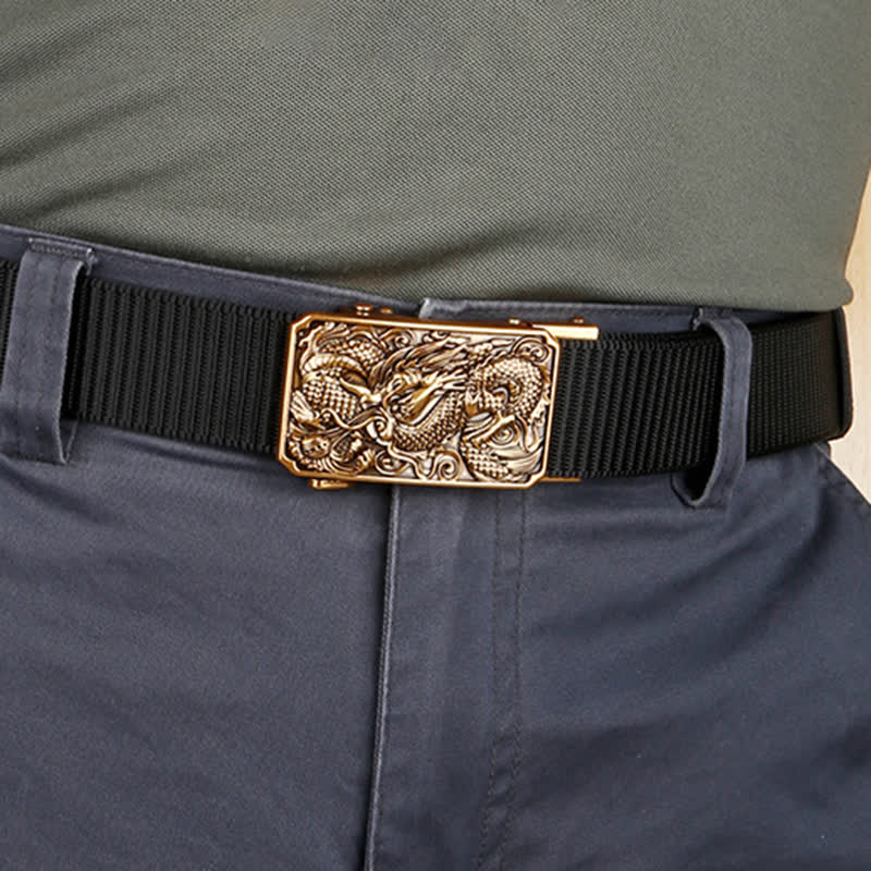 Ceinture en nylon à boucle automatique pour homme avec dragon enroulé en or