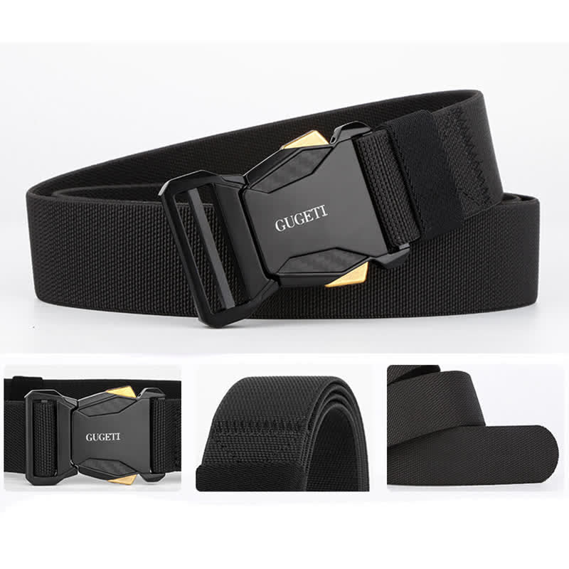 - Cette ceinture en nylon adopte une boucle à dégagement rapide qui se verrouille en « Plug » comme une boucle de ceinture de sécurité et se libère en un clic.