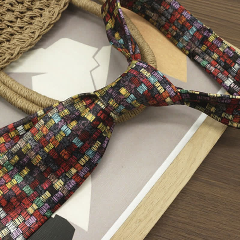 Motif quadrillé très coloré. Cette cravate peut être portée sur un blazer pour une tenue de soirée, mais aussi pour une tenue décontractée ou une soirée à thème.