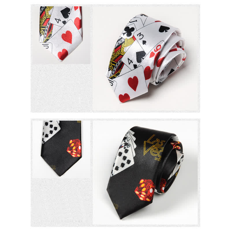 Il existe une cravate à thème de cartes à jouer. Une cravate blanche ou noire pour homme avec un motif de cartes à jouer est un excellent accessoire à porter au casino.