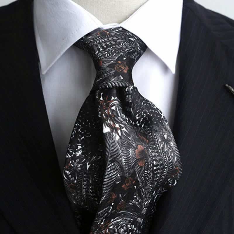 Cravate de costume pour homme à chardons noirs et fleurs rouge foncé