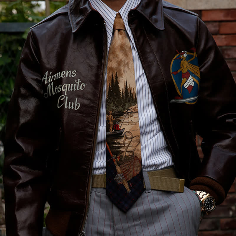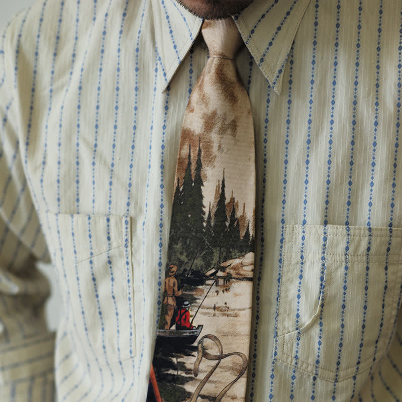 Cravate élégante pour homme avec imprimé paysage de pêche au lac