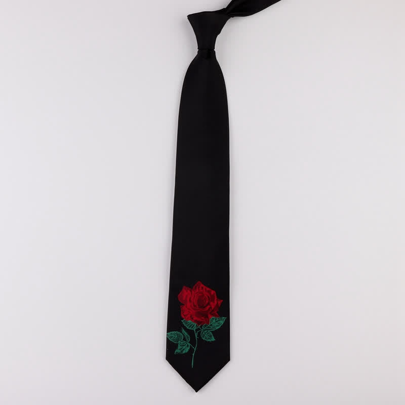 Cette cravate est ornée d'une peinture représentant une rose. Elle est conçue pour mettre en valeur la personnalité de l'homme moderne lors de réunions quotidiennes et de dîners.