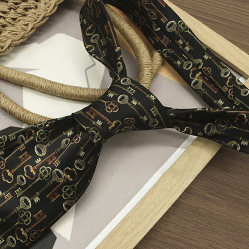 Cet accessoire sophistiqué présente un motif captivant de clés squelettes au design complexe sur un fond noir élégant. Que vous participiez à une soirée officielle ou que vous ajoutiez une touche de raffinement à votre tenue de tous les jours, cette cravate allie sans effort charme classique et style contemporain.