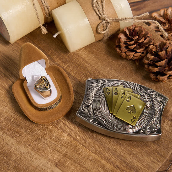 - Paquet : 1 boucle de couteau, 1 anneau avec 1 boîte à bagues de chapeau de cowboy