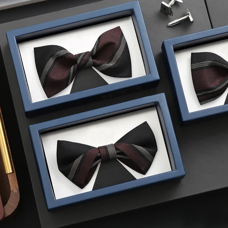 Nœud papillon formel à rayures bordeaux et noires pour homme