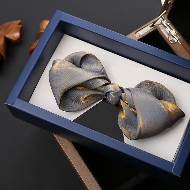 Nœud papillon gris brillant à forme pliée unique pour homme
