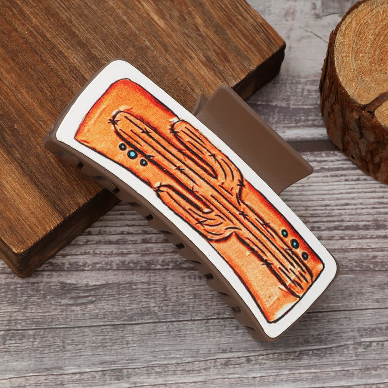 Pince à cheveux pour femme style cowgirl imprimé cactus café