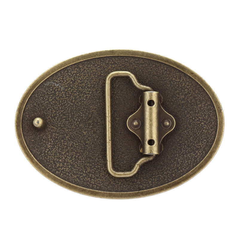 Une fine bordure en corde entoure une étoile sur un bouclier, des plumes d'aigle et des parchemins. Un drapeau américain subtil apparaît derrière le contour du bouclier avec une petite ligne bleue vibrante. Les mots « Honneur » et « Courage » bordent le haut et le bas de cette boucle de ceinture.