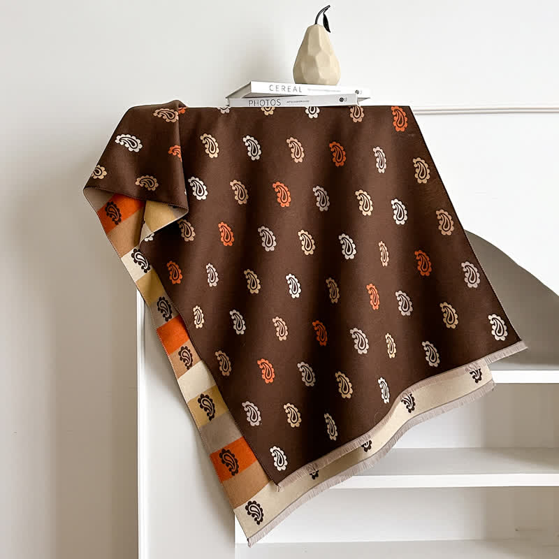 Avec ses motifs cachemire classiques mêlant tons naturels et rayures audacieuses, cette écharpe dégage un charme rétro-bohème. Que ce soit pour un brunch décontracté ou une escapade de fin de semaine, elle apporte une touche artistique et un confort douillet, devenant ainsi un incontournable de votre garde-robe de saison.