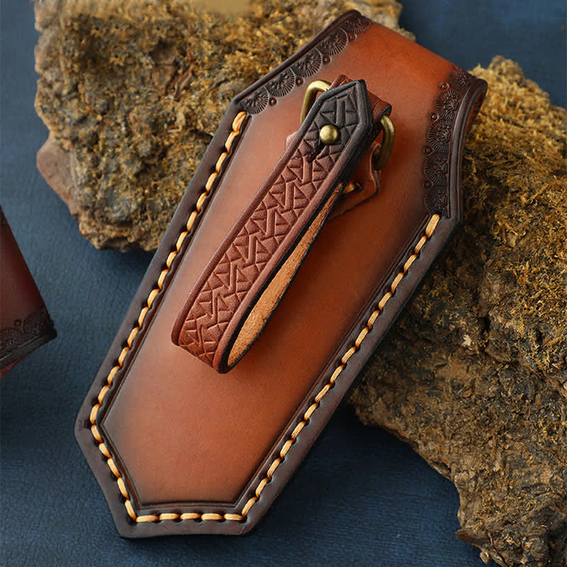 Sécurisez votre couteau dans cet étui en cuir pour ceinture, garantissant un rangement sûr pendant les activités en extérieur. L' étui en cuir sans couteau à l'intérieur , équipé d'une poche, peut contenir le couteau en toute sécurité, et il offre également un accès rapide, se glisse facilement et se retire. L'étui à couteau est conçu pour être porté sur les côtés de la ceinture, recommandé sur le côté gauche.