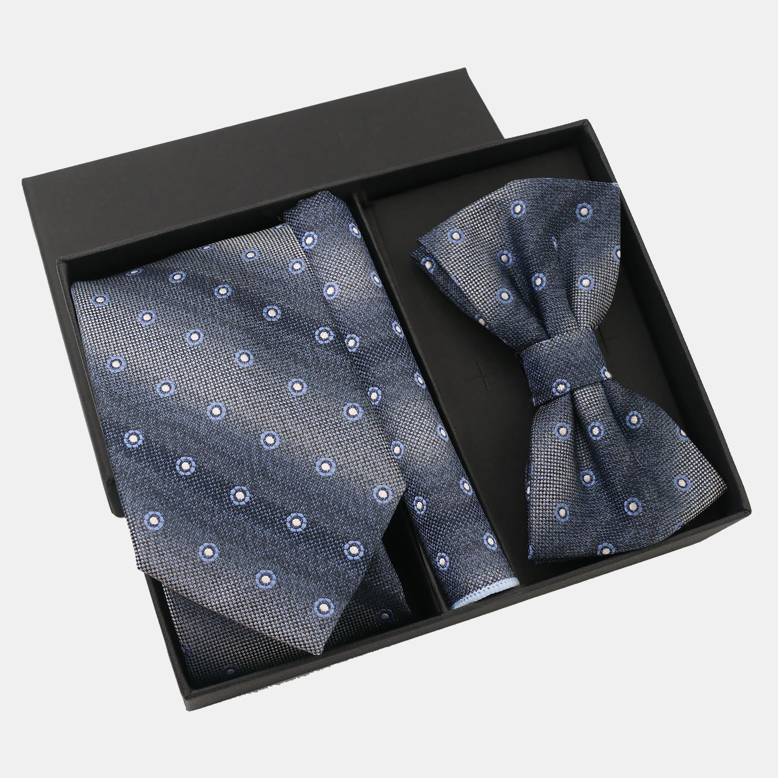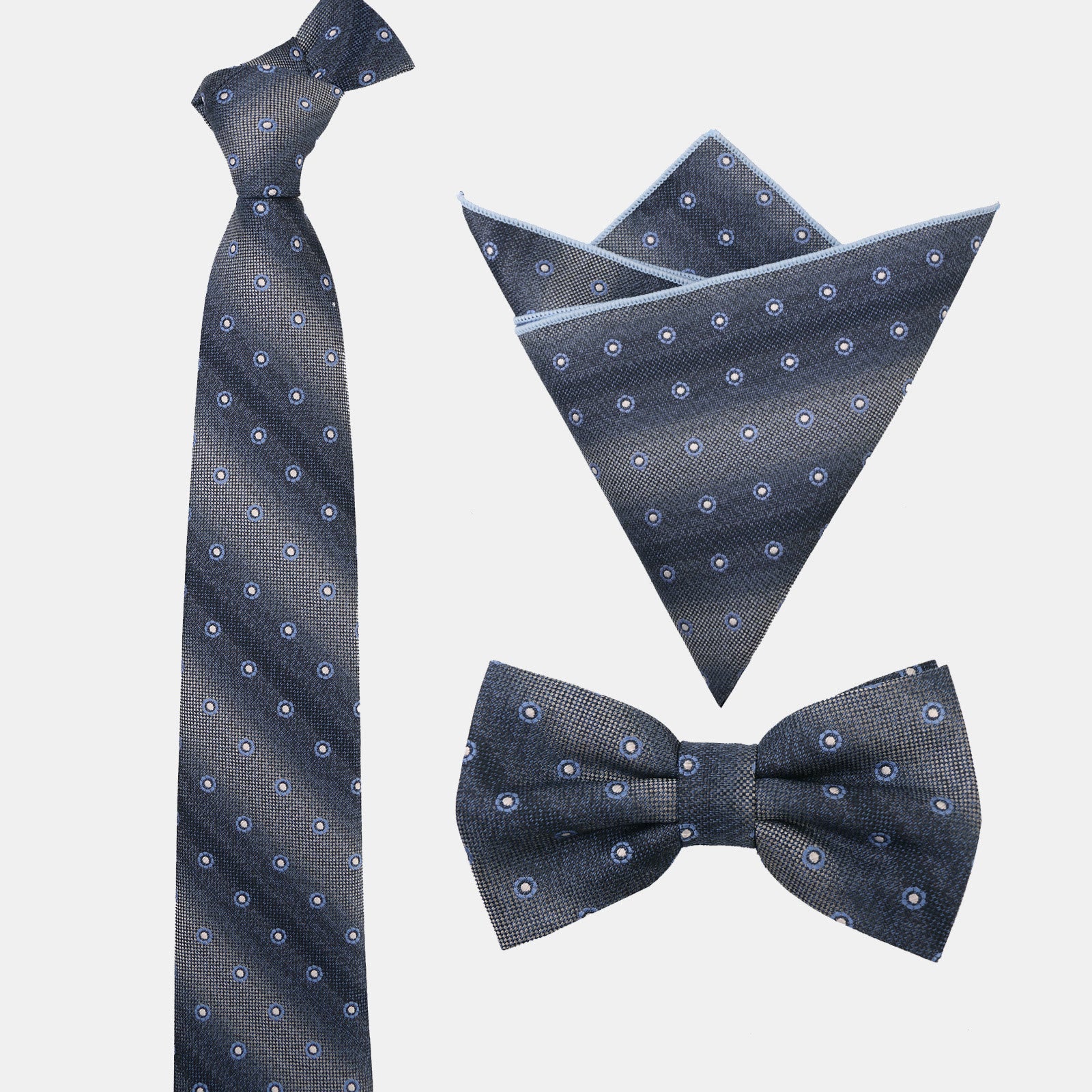 Ensemble 3 pièces pour homme : cravate, nœud papillon et pochette à pois dégradés - Style n° 1 - image 0