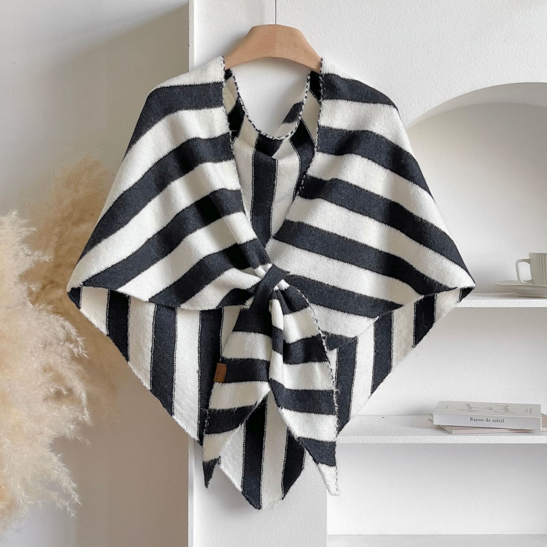 Châle-écharpe triangulaire rayé pour femme, chaud et confortable en hiver - Noir - image 0