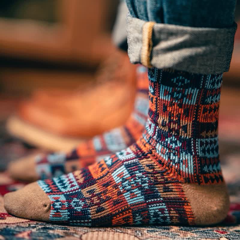 Chaussettes en coton à motifs géométriques de style ethnique pour hommes