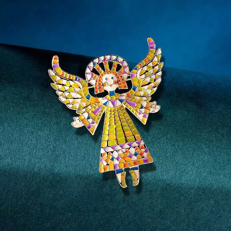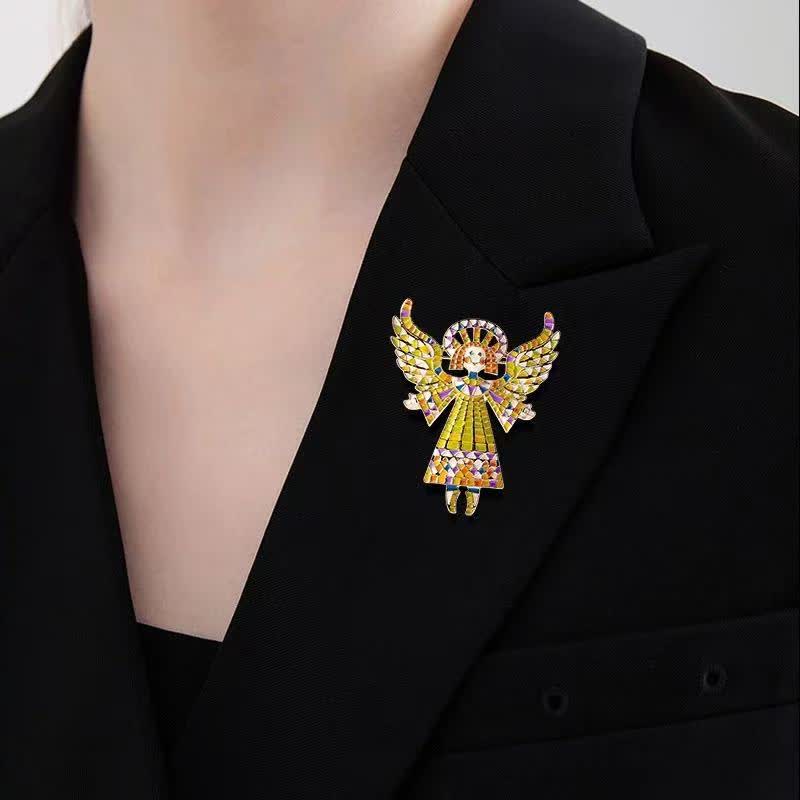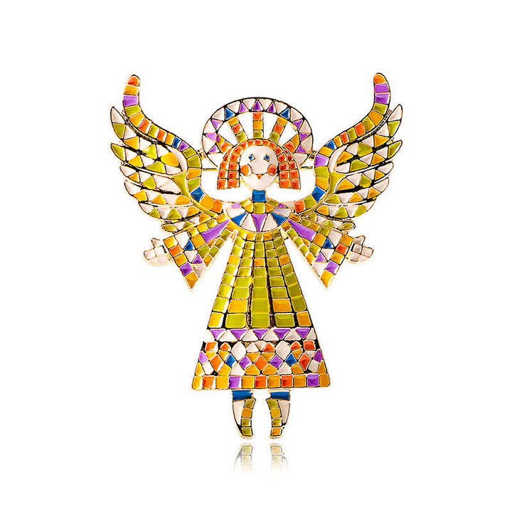 - Dotée d'un motif de fée fantaisiste avec des ailes d'ange mal placées, cette broche est une pièce unique.