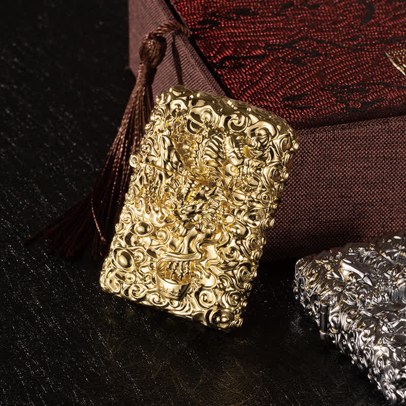 Briquet à pétrole rechargeable avec sculpture d'animaux sauvages mythiques